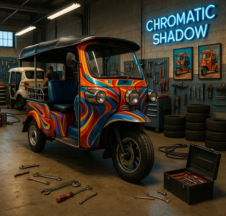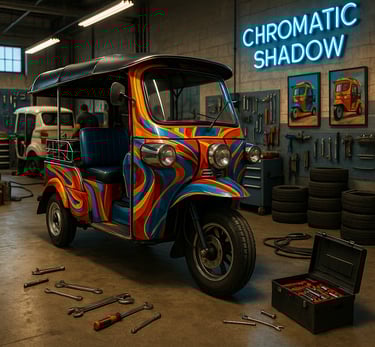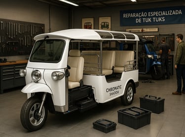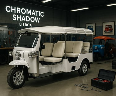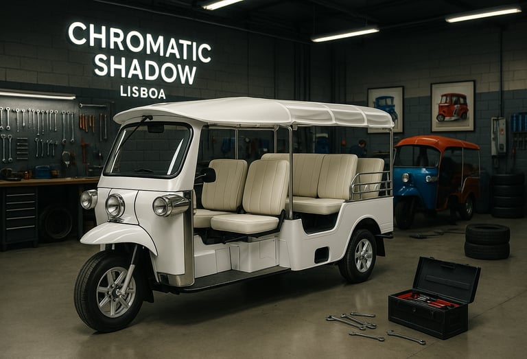 A Chromatic Shadow é uma oficina em Lisboa especializada na montagem, manutenção e conversão elétrica de tuk tuks. Aliamos experiência mecânica à inovação para transformar veículos a combustão em versões sustentáveis, com motores elétricos e baterias de lítio de alto desempenho.